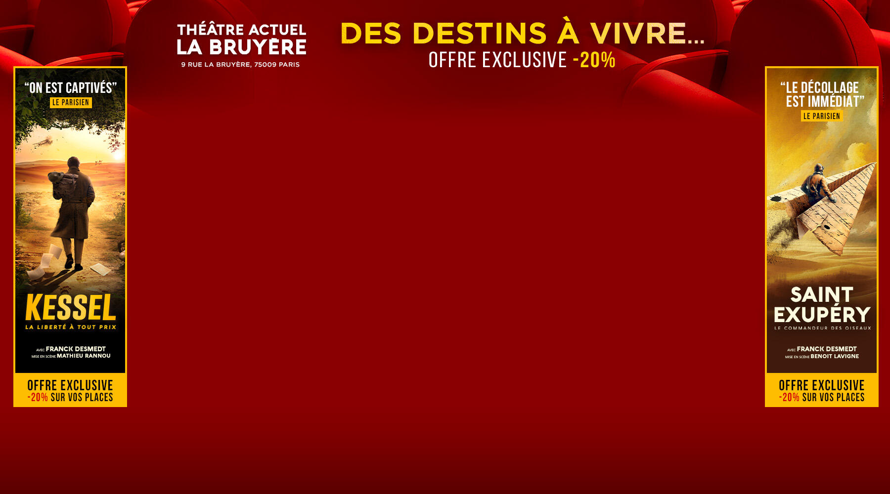 Lors de la réservation, pour les événements éligibles, vous pouvez choisir vos places sur un plan afin de vous permettre de vous projeter au mieux dans la salle de spectacle.