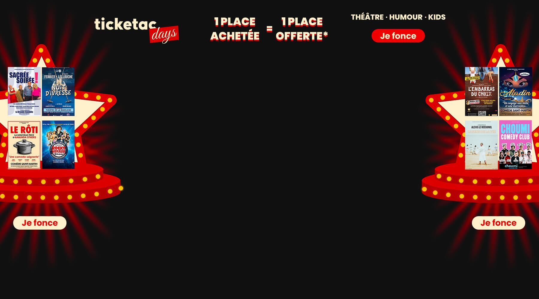 A savoir : certains spectacles sont en « placement libre » c’est-à-dire que l'emplacement définitif sera défini en fonction de l'heure de votre arrivée et les places côte à côte ne sont pas assurées