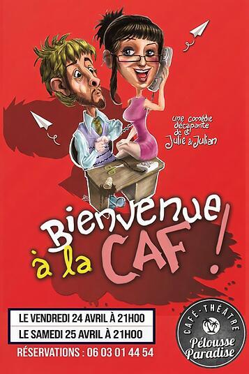Nouveau au Pélousse Paradise d'Alès, venez rire avec la comédie décapante de Julie et Julian Amard : Bienvenue à la CAF.