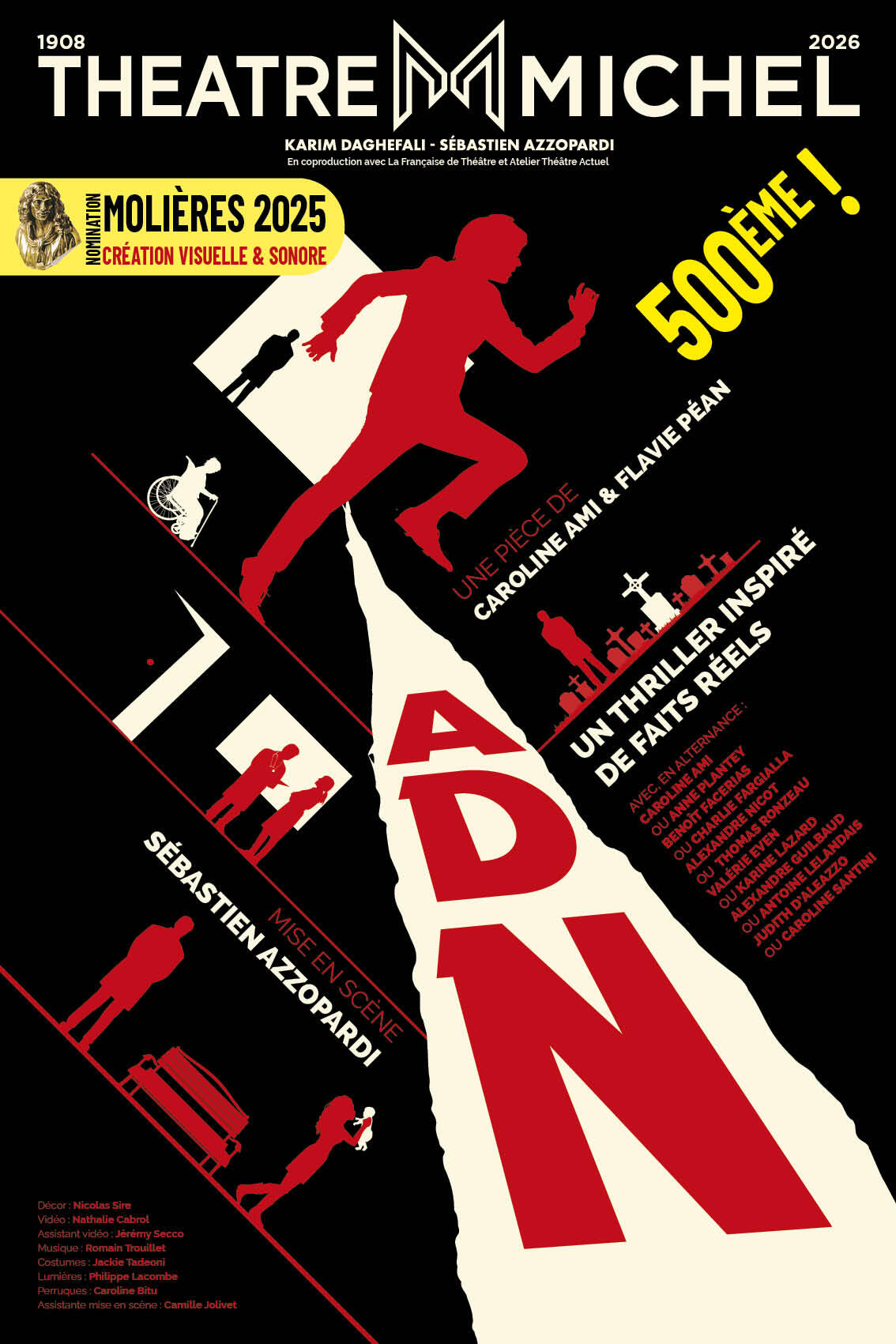 Après le triomphe de L'embarras du choix, Dernier coup de ciseaux, Ma version de l'histoire ou encore La Dame Blanche, découvrez la nouvelle pépite théâtrale de Sébastien Azzopardi : ADN ! Sur les planches du Théâtre Michel, craquez pour un thriller inspiré de faits réels...