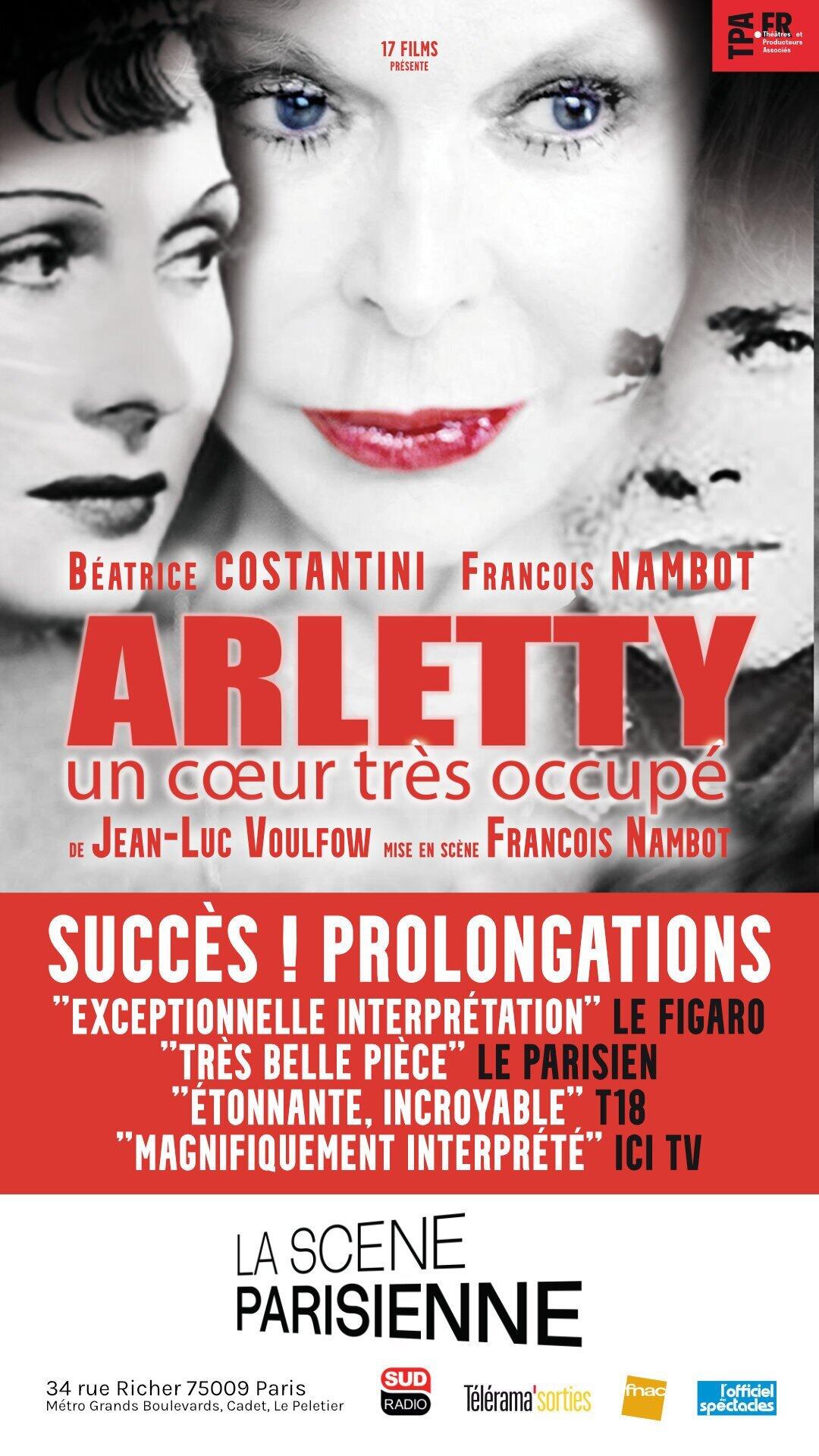 30 ans après Arletty revient sur sa passion pour un officier allemand pendant la seconde guerre mondiale. La correspondance amoureuse entre Arletty et ce soldat sont au coeur de la pièce de théâtre Arletty, un coeur très occupé de Jean-Luc Voufow, actuellement à la Seine Parisienne.