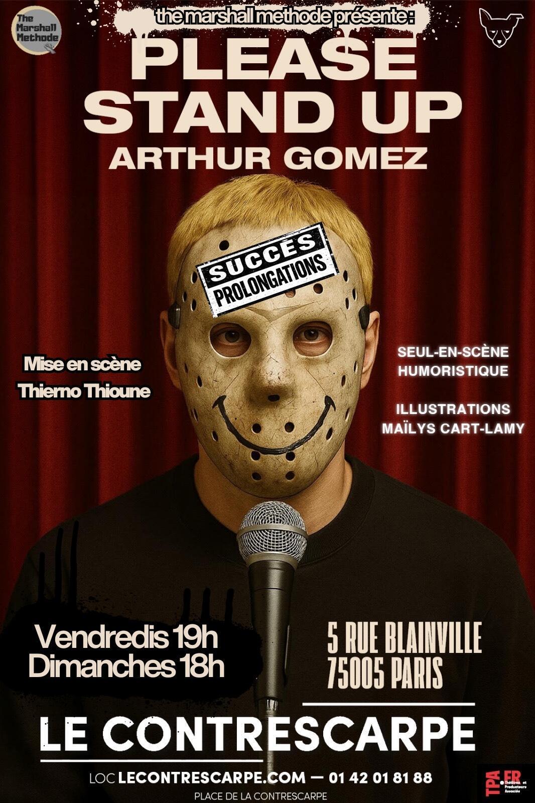 Mais à l’heure où les idoles, les influenceurs, les stars, prennent de plus en plus de place, où l’on s’identifie à des figures publiques jusqu’à se confondre avec elles, une question demeure : le masque du fan sert-il à cacher ce que nous sommes… ou à révéler ce que nous n’osons pas être ?Entre humour, confidences, punchlines et détours absurdes, Please Stand Up explore ce rapport intime aux idoles. Ce n’est pas seulement l’histoire d’un gamin de Grenoble qui rêvait de devenir Eminem : c’est aussi l’histoire d’un masque que l’on porte tous un jour, et de ce qu’il révèle quand on ose l’enlever.