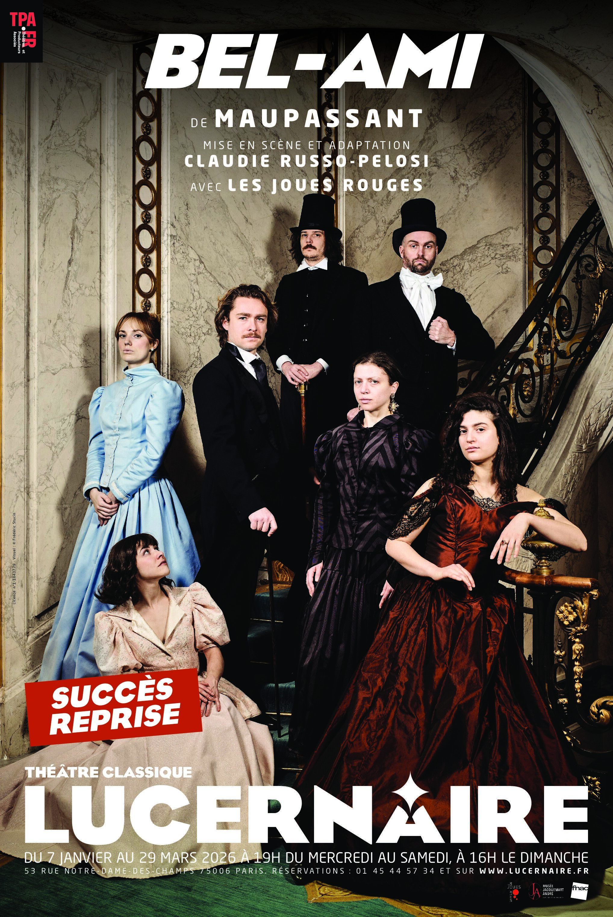 Reprise au Lucernaire, après son succès en 2025, retrouvez la pièce Bel-Ami d'après Maupassant avec une mise en scène de Claudie Russo-Pelosi et la troupe des Joues Rouges.