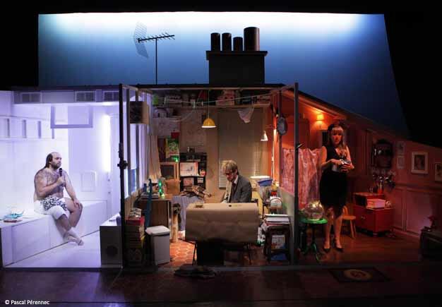Il était une fois, aujourd’hui, trois petites chambres de bonnes haut perchées sous les toits qui dominent Paris. Un gros homme, un grand maigre et une blonde pulpeuse sont voisins de couloir. L’histoire serait joliment romantique si ces trois hurluberlus n’avaient comme particularité de tout rater. Absolument tout. Les catastrophes s’enchaînent, les gags pleuvent, tandis que ces trois fantoches s’accrochent à tout ce qui ressemble à l’amour, à la vie ou à l’espoir. Grâce à une machinerie digne du grand guignol, les objets volent, les corps valdinguent et tout l’étage est chahuté par divers incendies, fuites, tempêtes et autres sinistres délirants qui finissent en un chaos étourdissant. Attachants au possible, risibles et irrésistibles, nos trois anti-héros nous hallucinent autant qu’ils nous font pleurer… de rire.