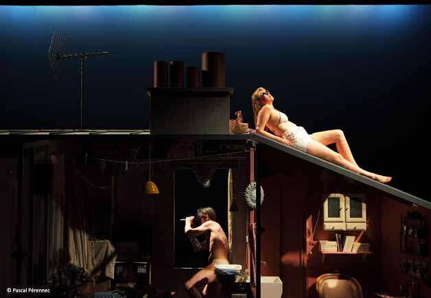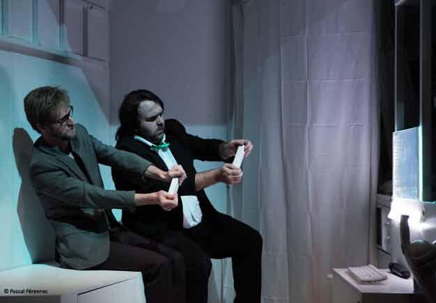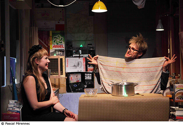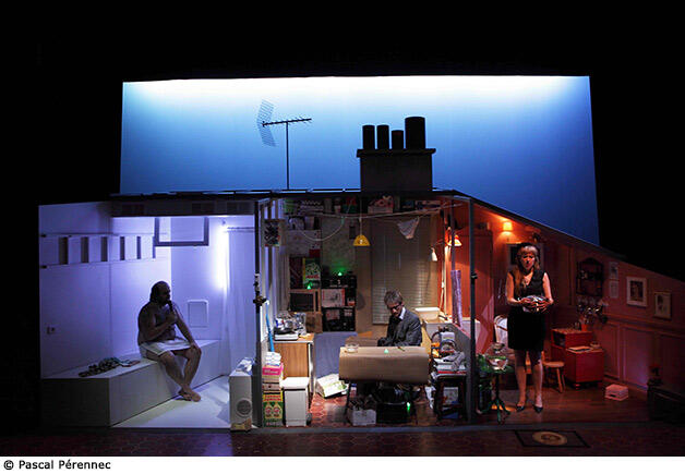 The Artist, en drôle Il y a beaucoup à dire, sur ce spectacle qui ne dit pas un mot. Trois formidables comédiens, qui ne peuvent miser que sur leurs faits et gestes, parviennent à rendre compte de ce qu'est leur quotidien dans des appartements de superficie très modeste, sous les combles. La promiscuité non voulue amène à une proximité volontaire, dans tout ce que les relations de voisinage peuvent connaître de triste, de comique, voire d'émouvant. Il faut non seulement de l'inventivité mais aussi une bonne dose de talent pour écrire un texte muet, heureusement agrémenté d'une bande-son qui autorise à la fois musiques et bruitages. Le regard acerbe que porte Pierre Guillois, en co-écrivant cette pépite, témoigne d'une bienveillance sur la cruauté de la vie de gens simples qui cherchent parfois à s'évader dans une poésie à portée de main. Bigrement efficace, cette comédie qui a reçu un Molière en 2017 nous fait sortir de notre bocal tout en nous laissant muets comme des carpes, preuve qu'avec du génie, aucune parole n'est nécessaire pour laisser bouche bée.