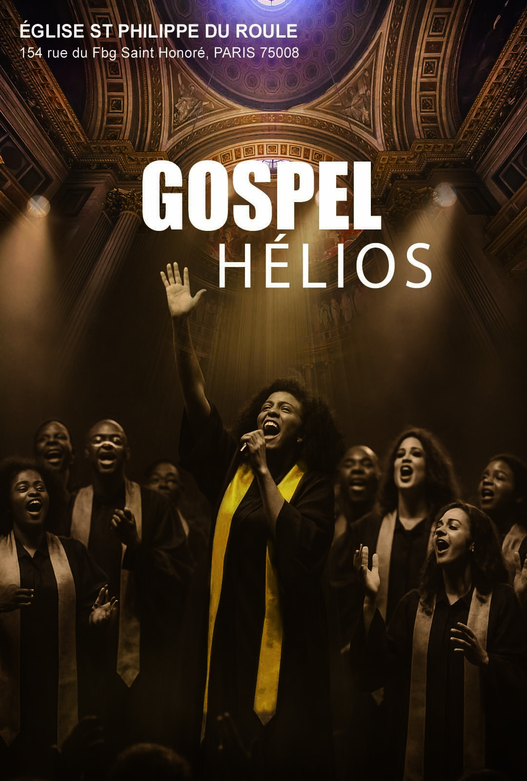 Le chœur Gospel Hélios, dirigé par Dominique Magloire, offre une performance extraordinaire en explorant les différents types de gospel. Il se produit dans les prestigieuses églises parisiennes de Saint-Germain-des-Prés, la Madeleine et Saint-Sulpice, Saint Philippe du Roule.