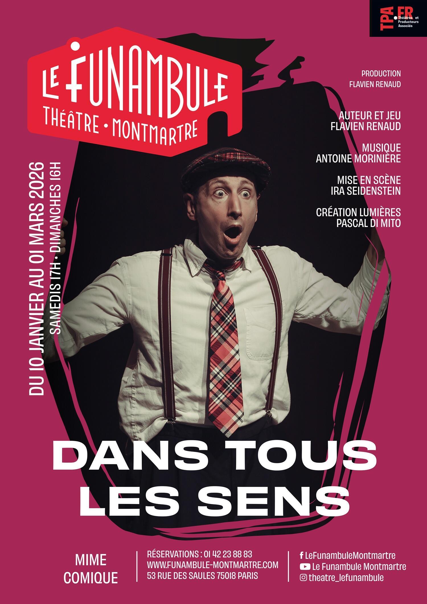 “Dans tous les sens” c’est un spectacle où l’on traverse la vie en grand écart : amour, sport, argent, travail, religion, famille… Tout y passe, et tout dérape joyeusement !