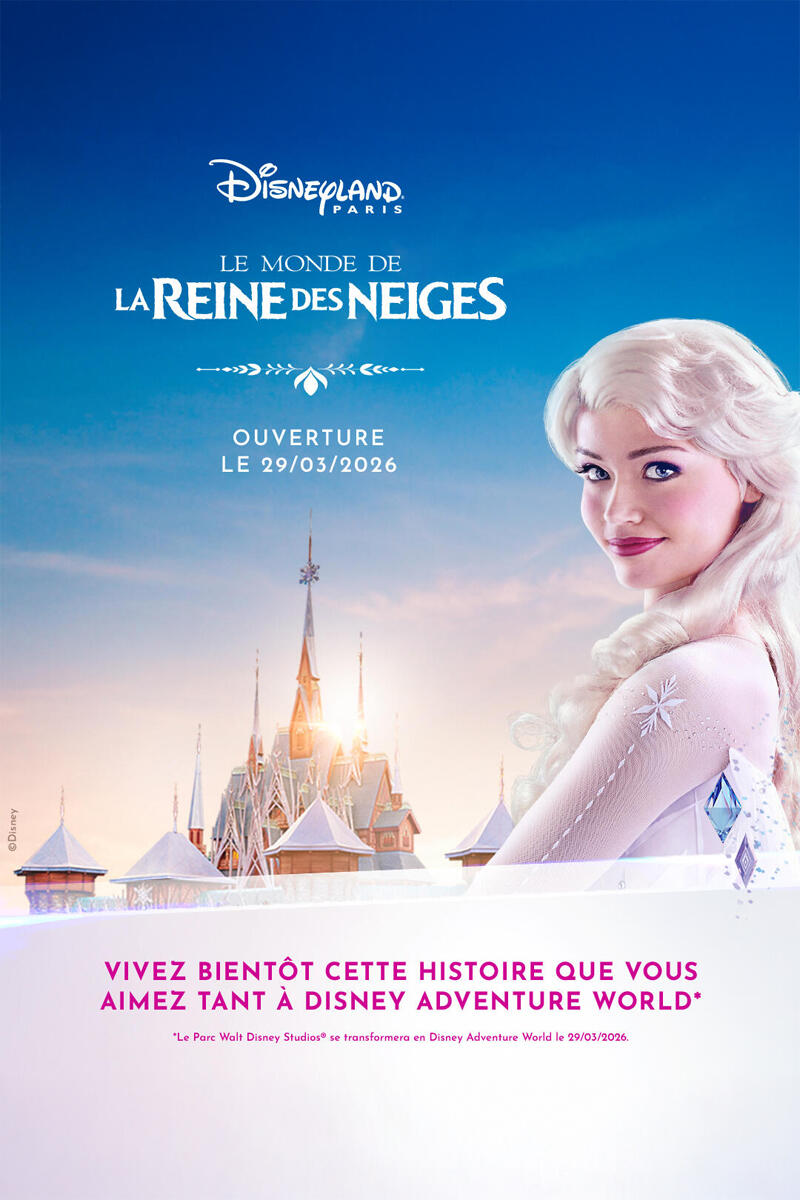 Découvrez le Monde de la Reine des Neiges, dès l'ouverture du Parc Disney® Adventure World le 29 mars 2026 à Disneyland® Paris.