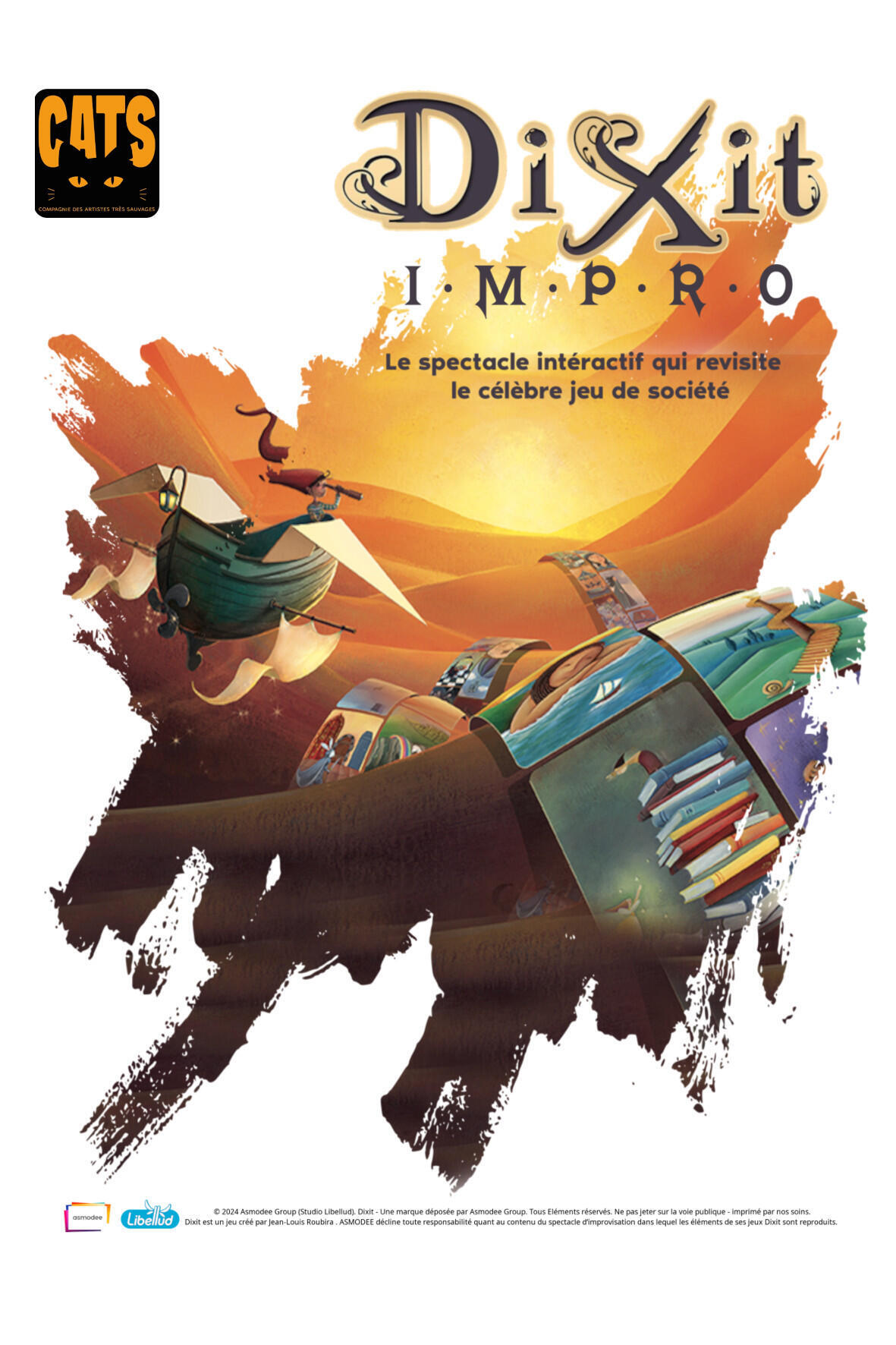 Les carte du jeu de société DIXIT prennent vie ! L'univers du jeu de société se métamorphose en un spectacle d'impro drôle, poétique et interactif, pour toute la famille. Et rassurez-vous, il n'est pas nécessaire de connaitre le jeu pour s'amuser.