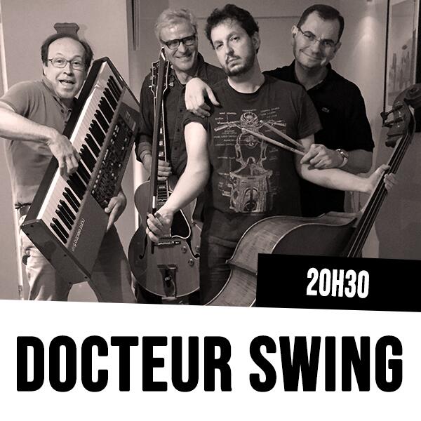 Le "Dr Swing quartet" a 12 ans d'âge (une bonne durée de maturation, comme pour un bon Bordeaux ou un pur malt écossais), né de la rencontre et de l'amitié entre un chirurgien pianiste (Alain VALVERDE) et un cardiologue batteur (françois DUCLOS), bien décidés au bout d'un moment à "exporter" leur musique au delà des murs de la salle de garde de leur hôpital et rapidement rejoint pour se faire par Frédéric CHAPERON (contrebasse) avec l'amicale complicité du grand guitariste Gérard CURBILLON (qui a croisé la route d'Eddy LOUISS, GUY LAFITTE, KENNY CLARKE, BARNEY KESSEL, SLIDE HAMPTON, ALAIN JEAN-MARIE et bien d'autres...) pour un projet musical articulé autours de standards revisités (souvent peu joués et connus du grand public, notamment du grand Wes Montgomery, cher à G Curbillon) et de compositions personnelles. Pour ce concert au SUNSET, le Dr Swing quartet devient sextet avec la participation amicale et exceptionnelle d'artistes qu'on ne présente plus, à savoir André VILLEGER (saxophones) et François BIENSAN (Trompette), pour un répertoire élargi, lorgnant volontiers vers BENNY GOLSON, HORACE SILVER et DUKE ELLINGTON. Le Dr Swing quartet : du groove et du swing en forme de remède bien nécessaire à la morosité ambiante.