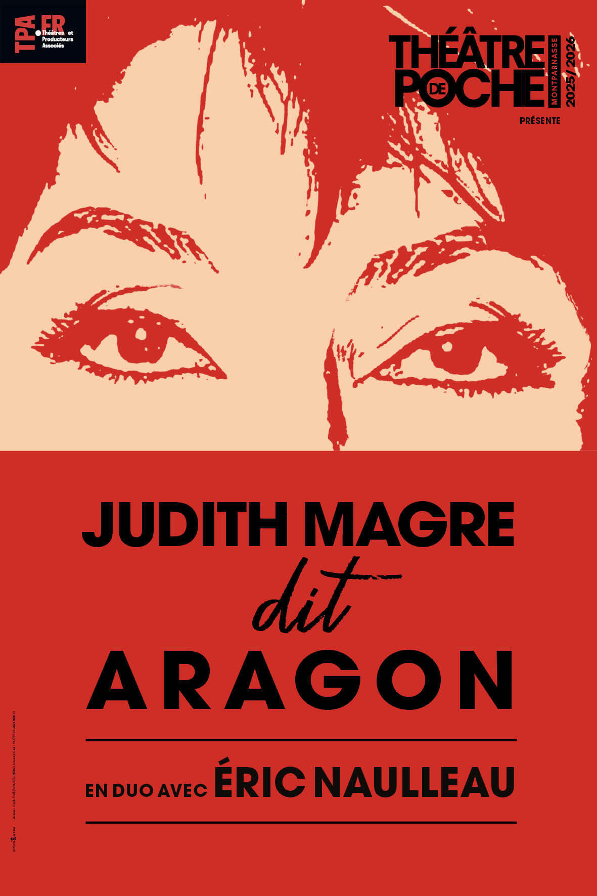 Poursuivant leur duo acclamé autour de la vie d’Apollinaire, Judith Magre et Eric Naulleau célèbrent Aragon. Poète à la vie ambigüe, romancier, journaliste, figure incontournable du communisme, du dadaïsme, du surréalisme, Louis Aragon est connu pour son engagement dans la Résistance et pour son attachement à sa Muse,rencontrée à Montparnasse, Elsa Triolet. C’est à une traversée de sa vie d’amours, des êtres comme des idées, du roman comme de la poésie, de la vie comme de sa réinvention, que vous invitent en récit et en poèmes nos deux artistes fidèles du Poche. Sous le regard d’Aragon, grâce au bagou de Naulleau, deux immortalités se croisent : les yeux d’Elsa et le sourire de Judith.