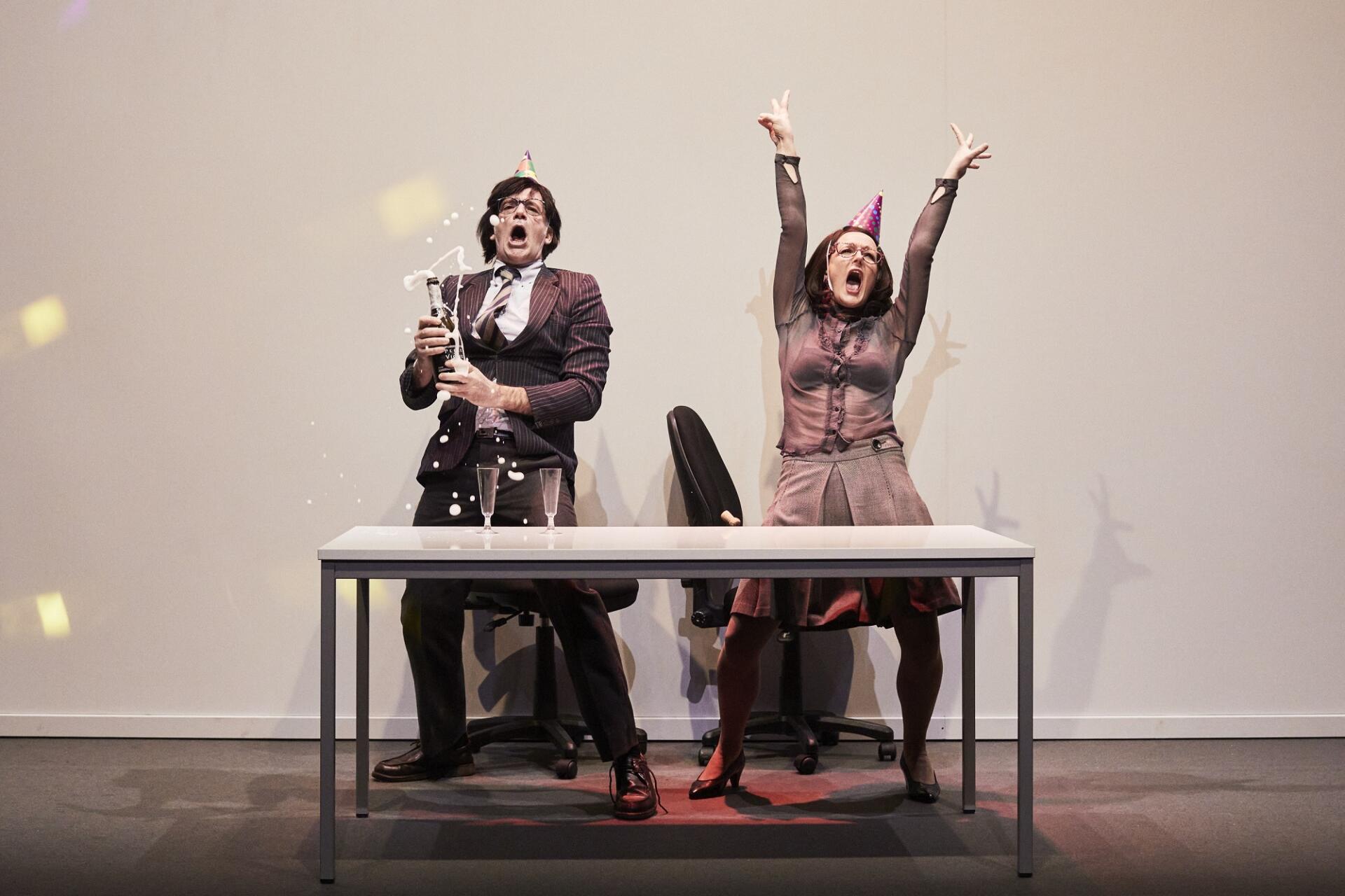 Voir plus de spectaclesL'Augmentation ou " comment, quelles que soient les conditions sanitaires, psychologiques, cli-matiques, économiques ou autres, mettre le maximum de chances de son côté en demandant à votre chef de service un réajustement de votre salaire ? " est le troisième volet de la trilogie En-treprise actuellement en tournée. Pour obtenir une augmentation (de salaire), il y a un chemin à parcourir. Long couloir percé de trous. Il faut que : la secrétaire du chef de service soit là, qu'elle soit de bonne humeur, que le chef de service soit là ; qu'il entende quand on frappe, qu'il dise d'entrer, que proposant ou non un siège, il écoute, qu'il se laisse convaincre, qu'il concède l'aug-mentation. Du moins qu'il en parle à son chef de service. Plaisir infini de la langue. Georges Pe-rec joue avec les mots, avec les rythmes. De mademoiselle Yolande à madame Yolande, et l'auteur nous a déjà fait vieillir de dix ans. Langage de joueur malicieux. Un homme et une femme – comme à la Création, sauf que ce n'est pas le paradis terrestre – collègues de bureau, so-lidaires parfois, adversaires parfois. Endossant tour à tour le rôle du patron sourd ou compatis-sant, tortionnaire moral absent, le rôle de l'employé remonté-abattu, vainqueur de quelques ins-tants, vaincu de longue date. Finalement miséreux misérable. Entre cafard de la Métamorphose kafkaïenne et têtard du Brazil Gilliaméen, répétant inlassablement les mêmes gestes. Les mêmes mots. Homme et femme gris. De la couleur de la pâte à modeler quand on a mélangé toutes les couleurs. Magma opaque et terne. Mais encore chaud. Ils fondent au rythme de leur déception.