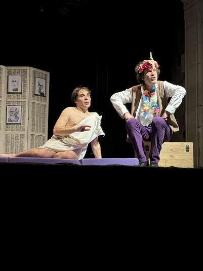 Avec ses talents mêlés d’humoriste et philosophe, Yves Cusset nous embarque dans un voyage foldingue à travers les vies de nos plus illustres penseurs, aux côtés du désopilant Emmanuel Lortet ! Pour assister à une plongée à la fois drôle, poétique et surprenante, aux sources vivantes de leur philosophie, et vivre un nouveau moment de pensée joyeuse où les philosophes deviennent des clowns solaires sortis d’une imagination d’enfant.