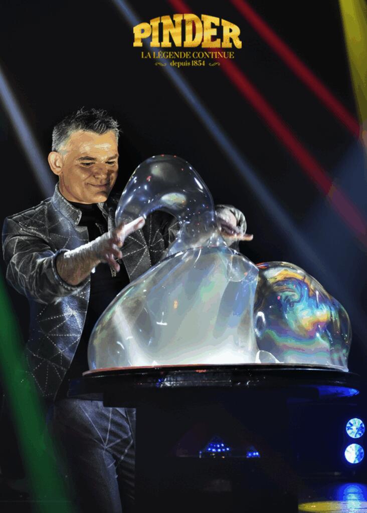 Sous le ciel étoilé du grand chapiteau, vous allez retrouver bien sûr tous les ingrédients magiques de la fête : le légendaire triple saut périlleux des trapézistes, les vrais clowns au nez rouge qui provoquent les éclats de rire, l’intrépide Homme Canon unique en Europe, mais aussi nos numéros époustouflants qui ont fait la renommée de PINDER : les meilleurs magiciens, jongleurs, acrobates de classe internationale et équilibristes, mais aussi le bal des bulles géantes, le célèbre globe des motos finaliste d’Incroyable Talent, ou bien encore l’envol poétique des drones, présentés pour la première fois sous un chapiteau !