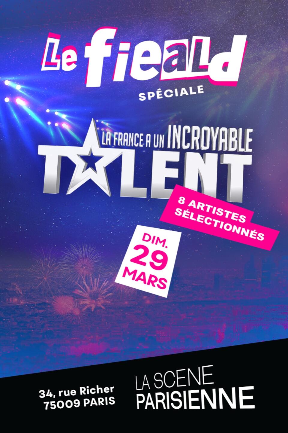 Envie d’une soirée drôle, insolite et pleine de surprises ? Ne manquez pas le FIEALD, la plus grande scène ouverte de Paris ! Chaque dimanche à 20h30 à la Scène Parisienne, un spectacle unique prend vie sous vos yeux...