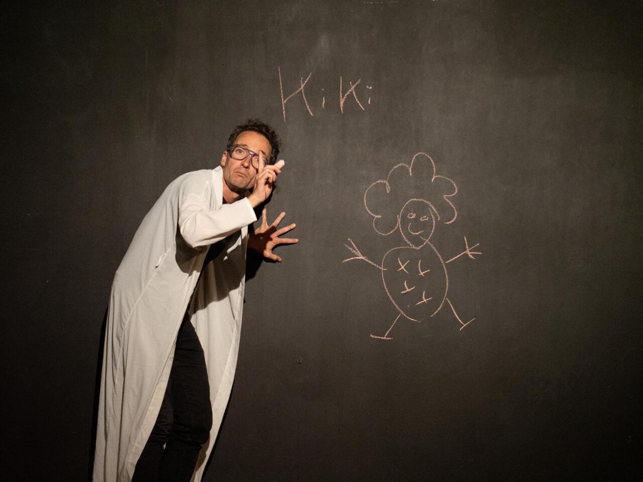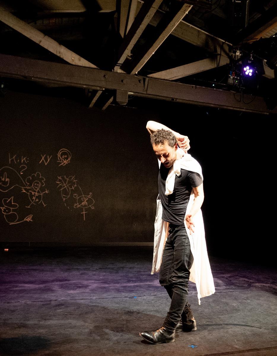 Un homme sur scène épaulé par divers membres de sa famille, ses camarades de classes, son psy, ses exs, ses futur(e)s, des collègues, des élèves, offre le fruit de sa réflexion.