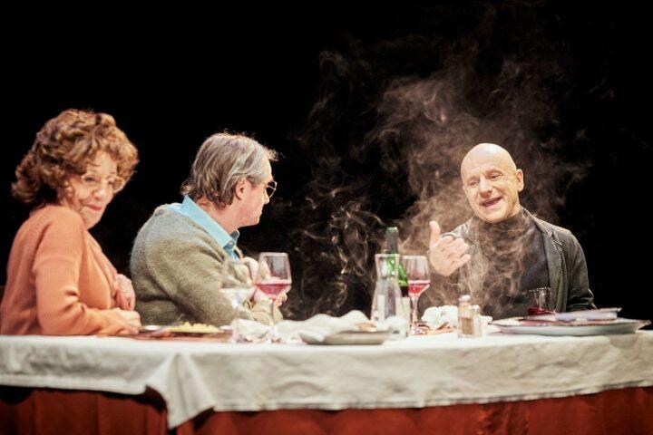 Peu à peu, aidés par la surprise, l’émerveillement et l’excellent vin qu’on leur a servi, ils sont gagnés par l’étrange émotion d’être sur scène devant un public. Leur hospitalité naturelle fait venir au plateau des fantômes de théâtreet la soirée devient une rencontre du visible avec l’invisible.