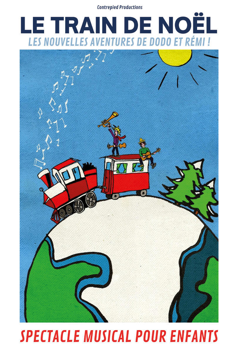 Embarquez à bord du Train de Noël, spectacle pédagogique et ludique, et partez faire le tour du monde en chansons!Dodo et Rémi, les troubadours les moins doués de leur temps, se demandent comment on fête Noël dans le monde.À bord de Ieur train à chansons, ils emmèneront le public en Sibérie, en Australie, au Congo et au Brésil, rencontreront un tas de gens différents et tenteront de rattraper le Père Noël dans sa course folle autour de la Terre…Un spectacle musical qui invite à faire le tour du monde et à découvrir la magie de Noël à travers les différentes cultures !