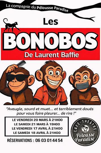 Trois amis sont aveugle, sourd ou muet mais chacun cherche l'amour. Le plus important est qu'ils ont trouvé comment nous faire pleurer de rire ! Venez applaudir les Bonobos de Laurent Baffie au Pélousse Paradise d'Alès.