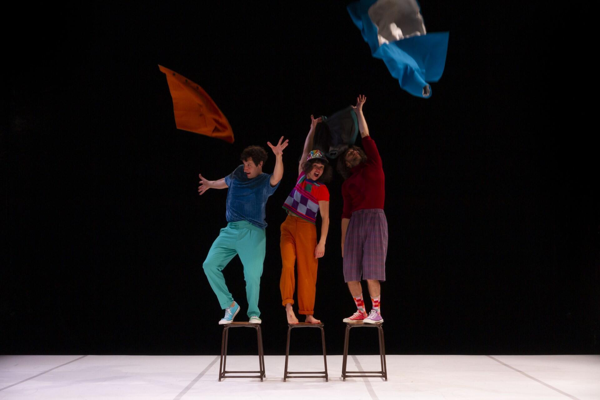 Partir du bon pied, se jeter tête la première, avoir le cœur sur la main, finir sur les rotules, garder la tête sur les épaules… Un travail ludique autour de ces expressions courantes a été imaginé pour les décortiquer et leur donner vie. Entre absurde, burlesque et poésie, les trois acrobates danseurs articulent le corps et le langage, passent de la métaphore au concret. Une fantaisie ludique et joyeuse dans laquelle de mini-fictions s'invitent dans le récit, dans un rapport immédiat autant que décalé.