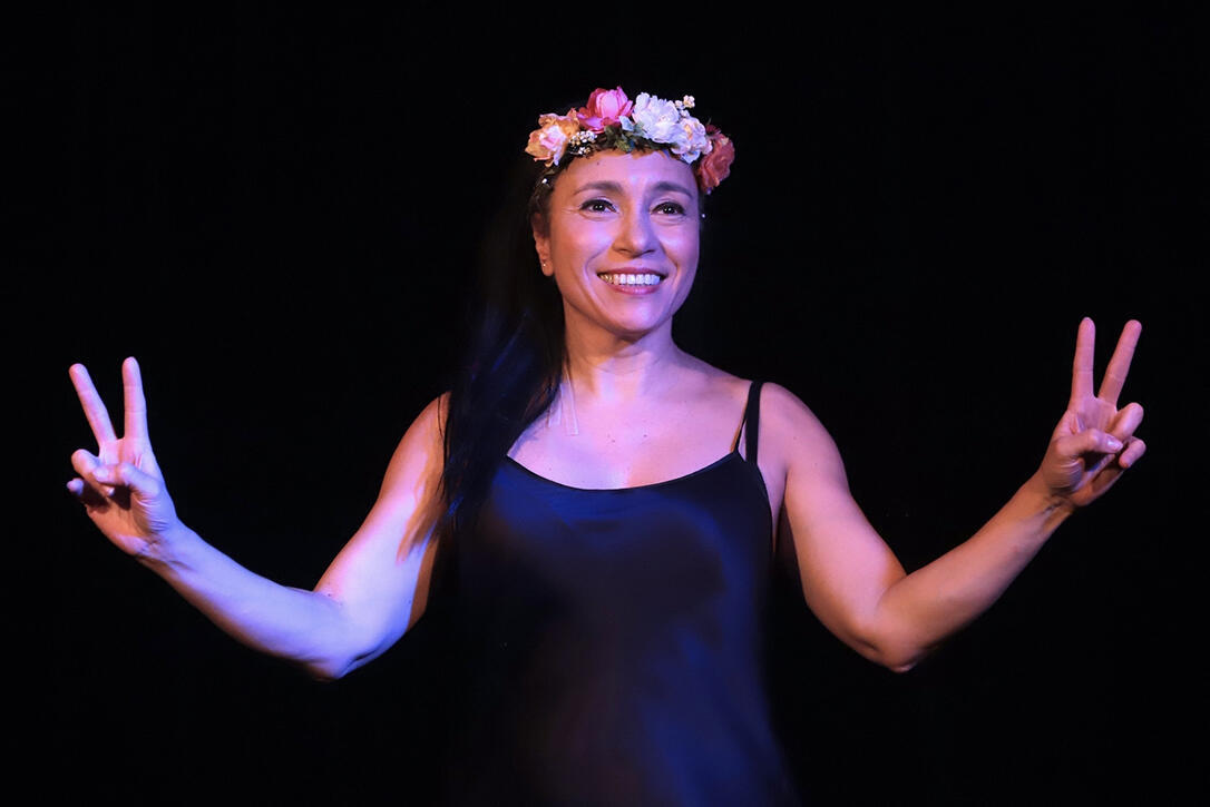 Florencia Avila, mime argentine donne corps, au-delà des mots, aux archétypes féminins de l’Histoire de humanité avec humour, intelligence et poésie.