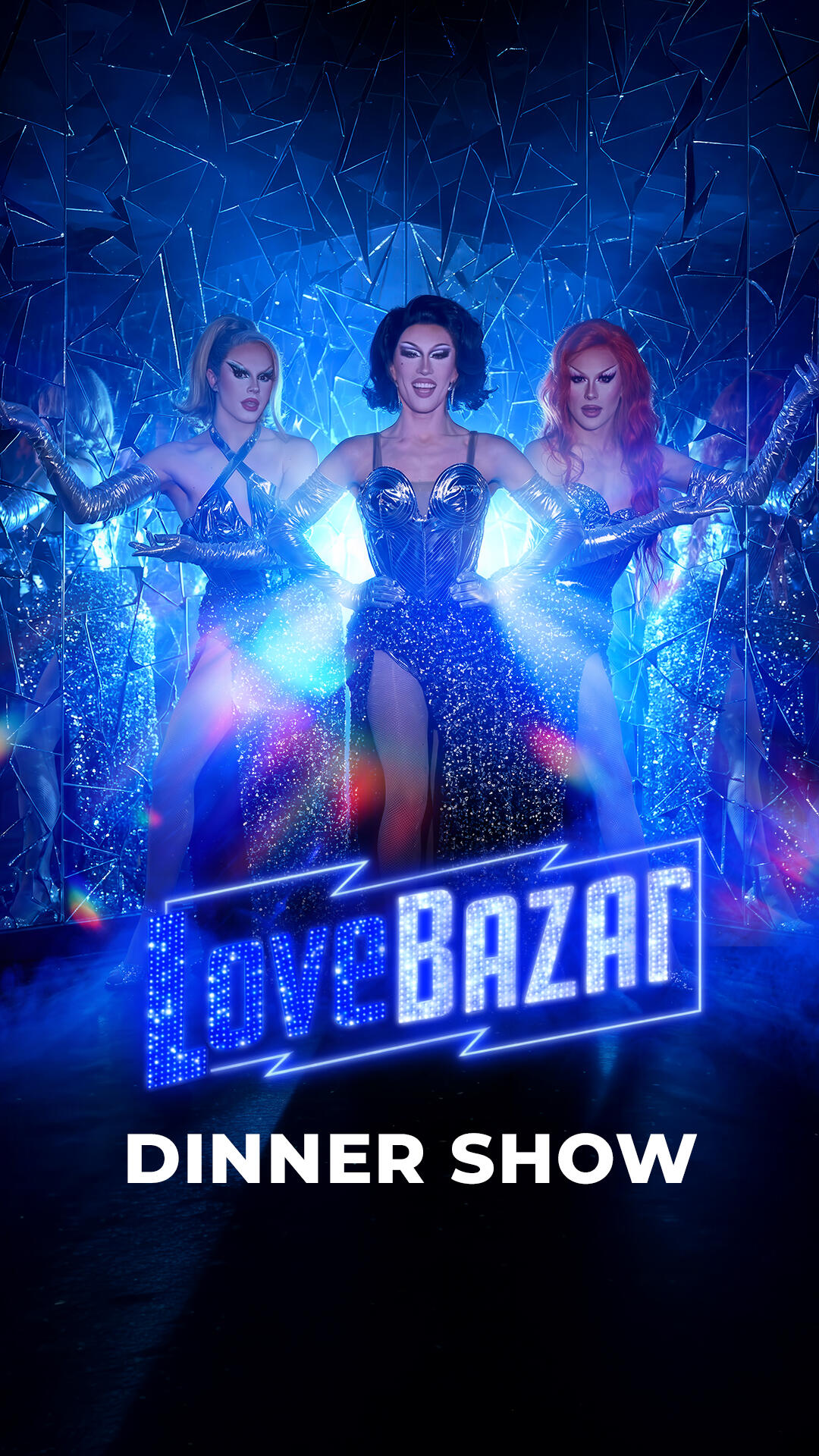 Love Bazar est une revue moderne et flamboyante portée par ses drag queens iconiques — Misty Phoenix, Jenny From The Blocnote et Azémylia — accompagnées de danseurs talentueux aux chorégraphies millimétrées.