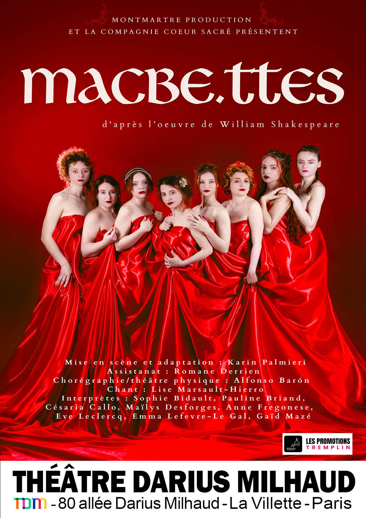 Auteur : William Shakespeare / Adaptation & Mise en scène : Karin Palmieri / Interprètes : Sophie Bidault, Césaria Callo, Maylis Desforges, Anne Fregonese, Eve Leclercq, Emma Lefebvre-Le Gall, Gaid Mazé