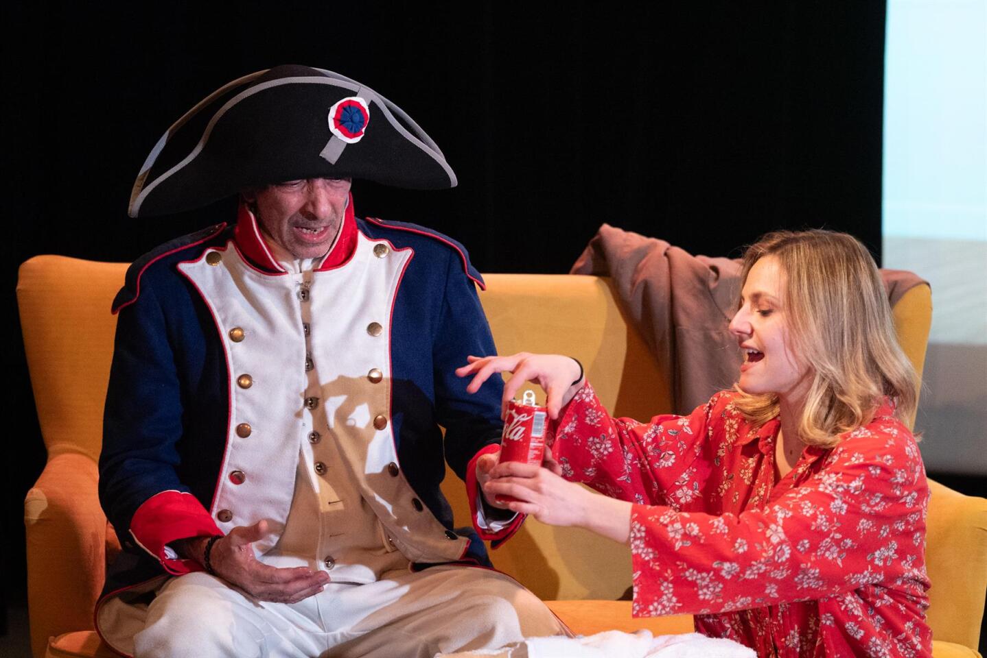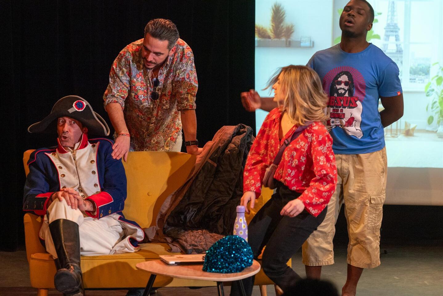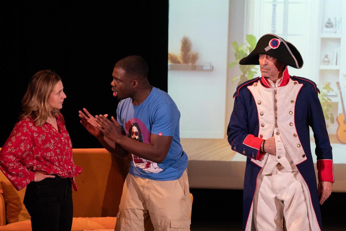 On a été voir cette comédie suite à la lecture des avis. Je voulais me détendre, rire et découvrir de la nouveauté. On a eu peur d'être une vingtaine de spectateurs mais 2 groupes (club théâtre ?) sont arrivés en dernière minute + des couples. Ouf pour les comédiens car la salle est quand même assez grande. C'est surprenant au début (c'est Napoléon dans son époque), un peu surjoué et hystérique pour l'arrivée dans notre époque mais ca commence à se mettre en place pour devenir drôle puis loufoque. Concernant la satire de notre époque, elle est bien vue. A voir si elle peut s'adapter au temps qui passe (expressions, clichés, contexte politique) In fine, un bon moment et une pièce que je conseille à voir. Ca ne me surprendrai pas que cela devienne un film...