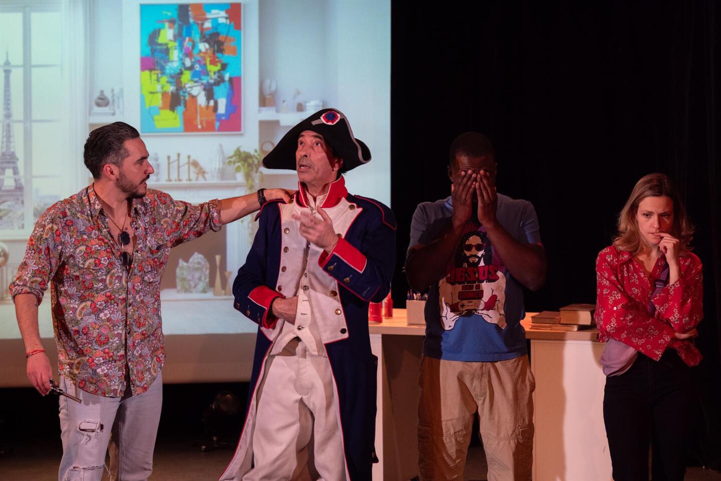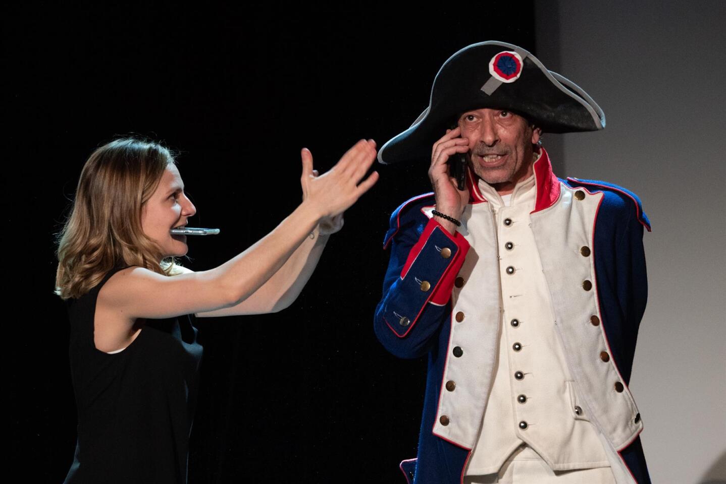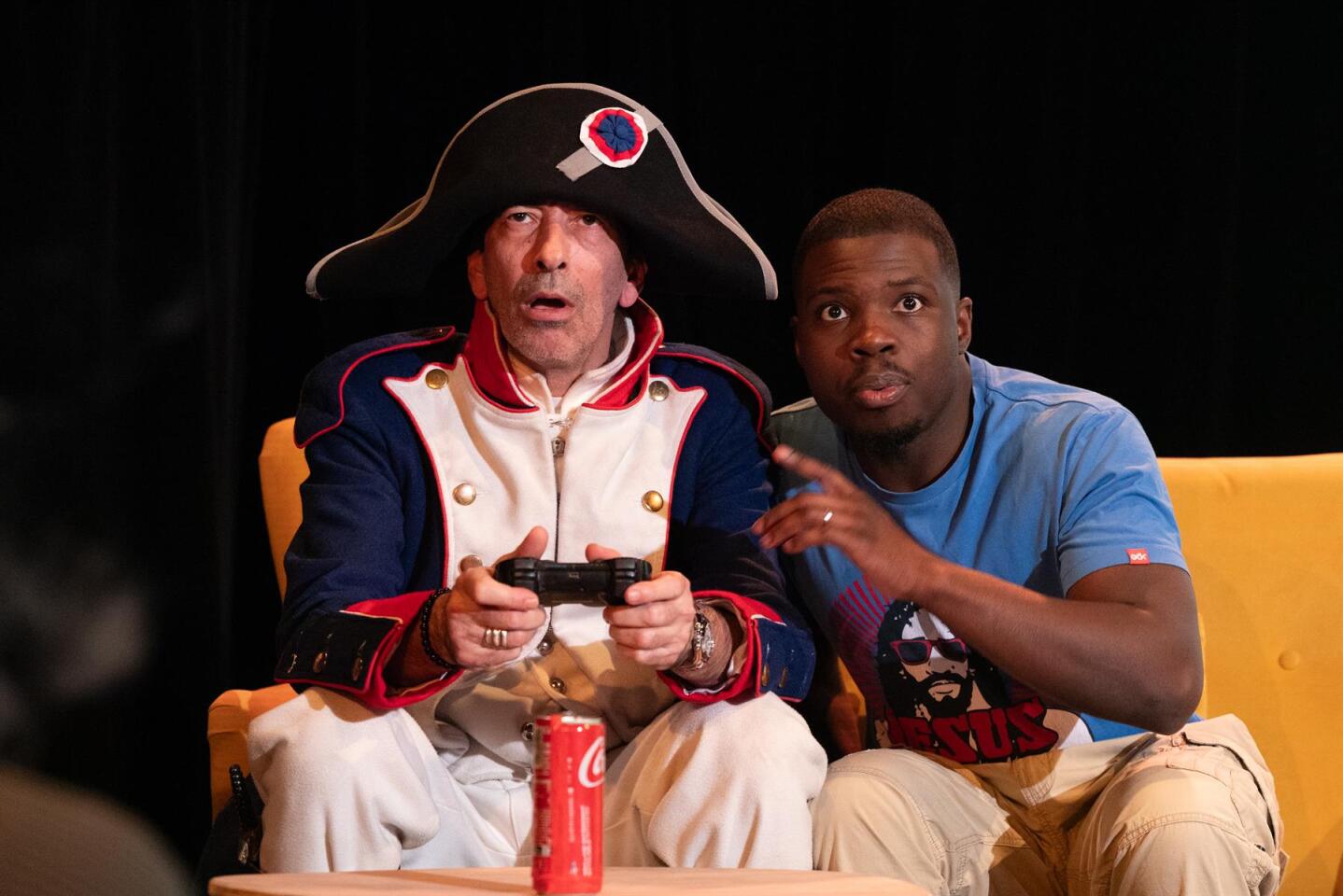 On a été voir cette comédie suite à la lecture des avis. Je voulais me détendre, rire et découvrir de la nouveauté. On a eu peur d'être une vingtaine de spectateurs mais 2 groupes (club théâtre ?) sont arrivés en dernière minute + des couples. Ouf pour les comédiens car la salle est quand même assez grande. C'est surprenant au début (c'est Napoléon dans son époque), un peu surjoué et hystérique pour l'arrivée dans notre époque mais ca commence à se mettre en place pour devenir drôle puis loufoque. Concernant la satire de notre époque, elle est bien vue. A voir si elle peut s'adapter au temps qui passe (expressions, clichés, contexte politique) In fine, un bon moment et une pièce que je conseille à voir. Ca ne me surprendrai pas que cela devienne un film...
