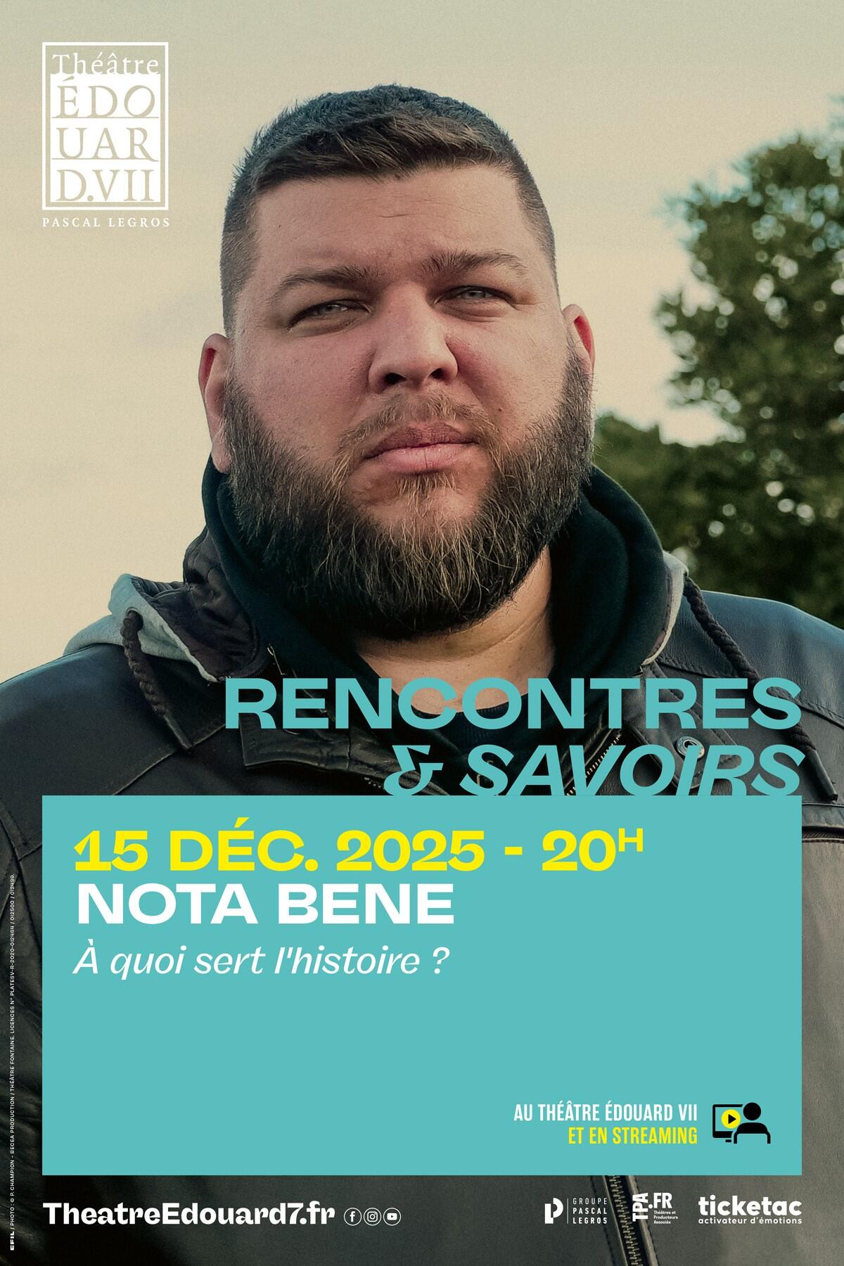 Pour la première fois sur scène, retrouvez le créateur de la chaîne YouTube Nota Bene lors d'une conférence consacrée à l’extrémisme et au complotisme sur Internet. Fidèle à son style, Nota Bene propose une approche historique de la montée de la désinformation, de la réécriture de l’Histoire et du rôle qu’elle joue sur le web.