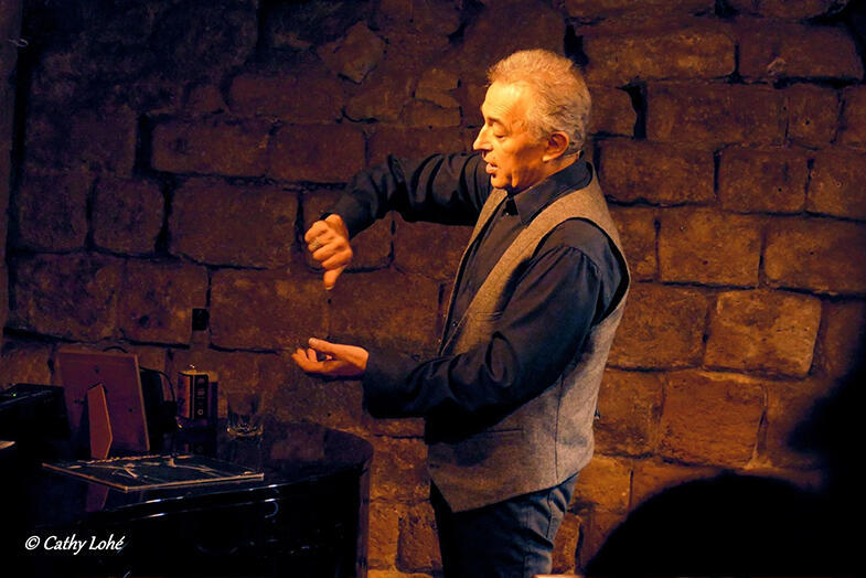 Entre dialogues et chansons, un comédien chanteur sur le retour s’invente son Reggiani et retrouve le gout de la scène.