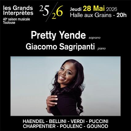 La soprano sud-africaine Pretty Yende qui subjugue les scènes du monde entier, sera en concert exceptionnel à la Halle aux Grains de Toulouse le 28 mai 2026.