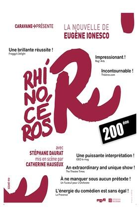 Il s'agit d'une adaptation sous forme de monologue de la pièce de Ionesco. Toute l'intrigue passe donc par le personnage principal de la pièce, qui raconte au public l'épidémie de rhinocérite, et rapporte les dialogues qui ont eu lieu entre les différents personnages. En une heure environ, l'adaptation est portée par un comédien remarquable, qui endosse successivement le rôle des différents personnages de la pièce. C'est enlevé, rapide, efficace. On perd peut-être le message politique, mais la réalité se charge de toute manière de nous le rappeler...