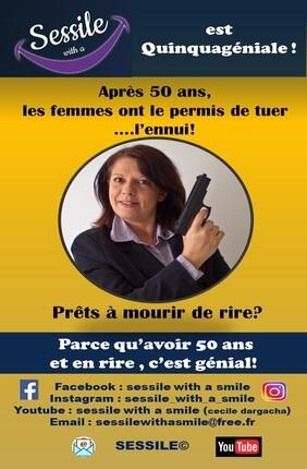 Sessile revient ! Elle est quinquagéniale ! Et oui ! Parce qu’avoir cinquante ans et en rire, c’est avoir du génie ! Avec son nouveau one woman show écrit, mis en scène et joué par Sessile, cette lyonnaise énergique vous offre ses humeurs, ses coups de gueule et son humour toujours piquant ! Dans ce nouvel épisode, les femmes cinquantenaires ont le permis de tuer l’ennui et elles ne s’arrêteront plus ! Alors ? Prêts à mourir...de rire ???