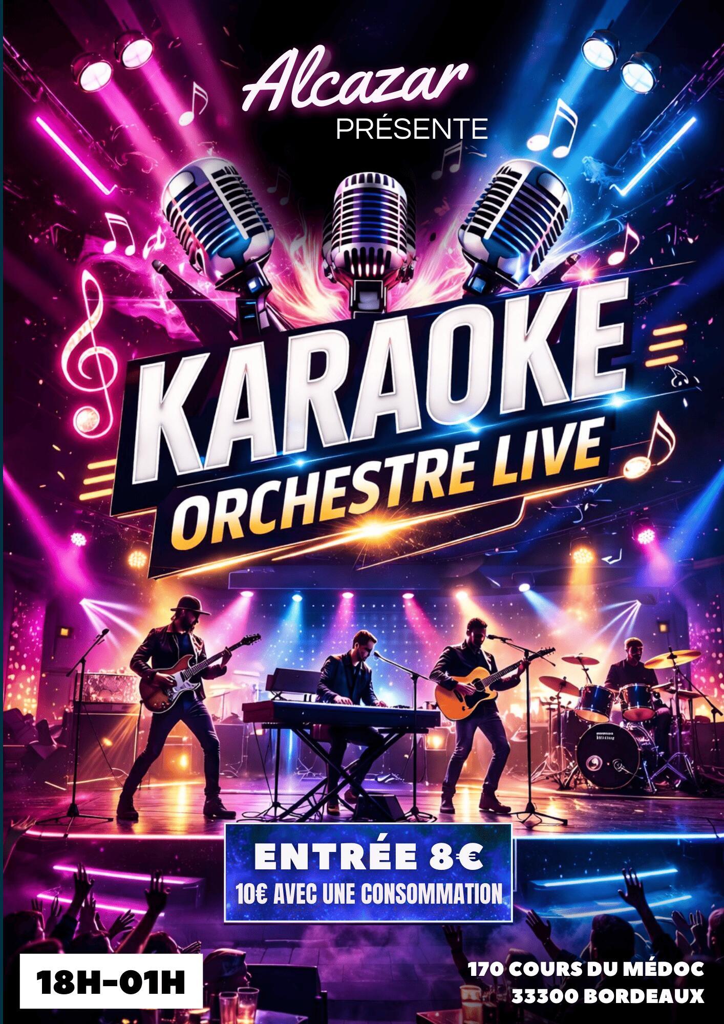 Vivez une soirée festive et pleine d'énergie avec le Karaoké Orchestre Live de l'Alcazar ! Montez sur scène et chantez accompagné de musiciens en live pour une expérience unique, entre concert et karaoké.