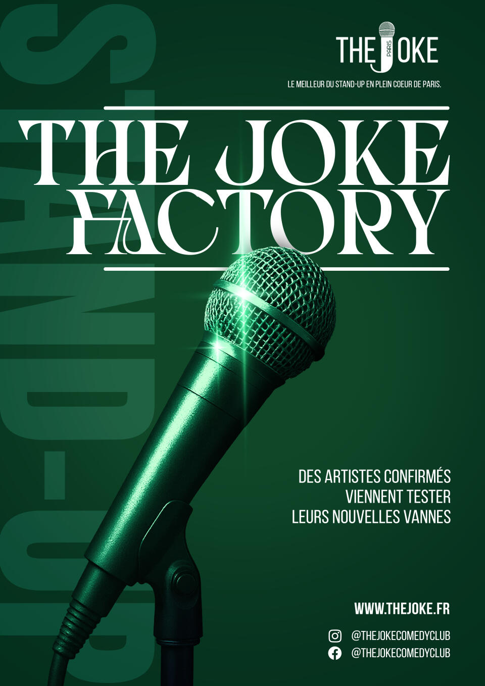 The Joke Factory : des humoristes talentueux entre étoiles montantes et étoiles de mer, de têtes déjà bien connues et des têtes qui nous disent quelque chose, mais pas sur... Ils viennent tester, affiner, bousculer leurs sketchs avec vous comme seul jury.