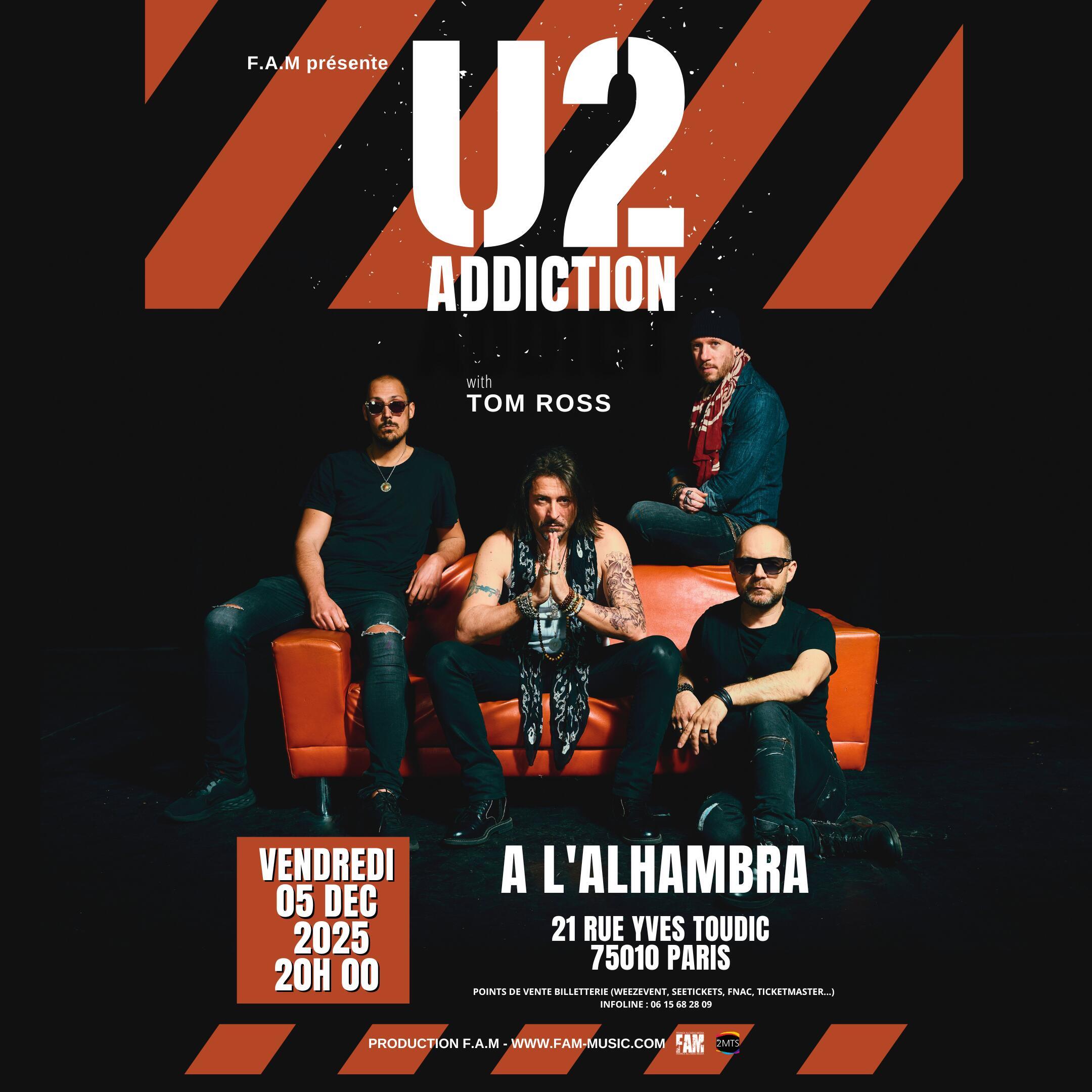 Bien connu pour son rôle dans la comédie musicale Roméo et Juliette et sa participation à l'émission The Voice, Tom Ross est le chanteur du groupe U2 Addiction composé du guitariste Jocelyn Dupuis, du bassiste Laurent Bebin et du batteur Hugo Sarton