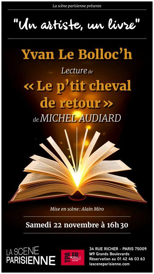 Carte blanche lui a été donnée pour choisir une oeuvre qu'il a souhaité partager avec vous, selon son goût, sa sensibilité, ses engagements. Invité du mois de novembre, Yvan Le Bolloc'h nous emporte dans l'univers du grand Michel Audiard en lisant "Le p'tit cheval de retour", premier de ses deux romans. C'est le récit de personnages hauts en couleurs qui entreprennent un périple à vélo traversant le pays, en temps guerre... Attention: la société, le vocabulaire et les moeurs se fracassent sur notreépoque, actuelle! Le débat est ouvert avec l'acteur et créateur de "Caméra Café", actuellement en tournage. Il sillonne par ailleurs, depuis de nombreuses années, les scènes de France avec son groupe de musique gitane " Ma guitare s'appelle revient". Rendez-vous est pris vous venir à votre rencontre.