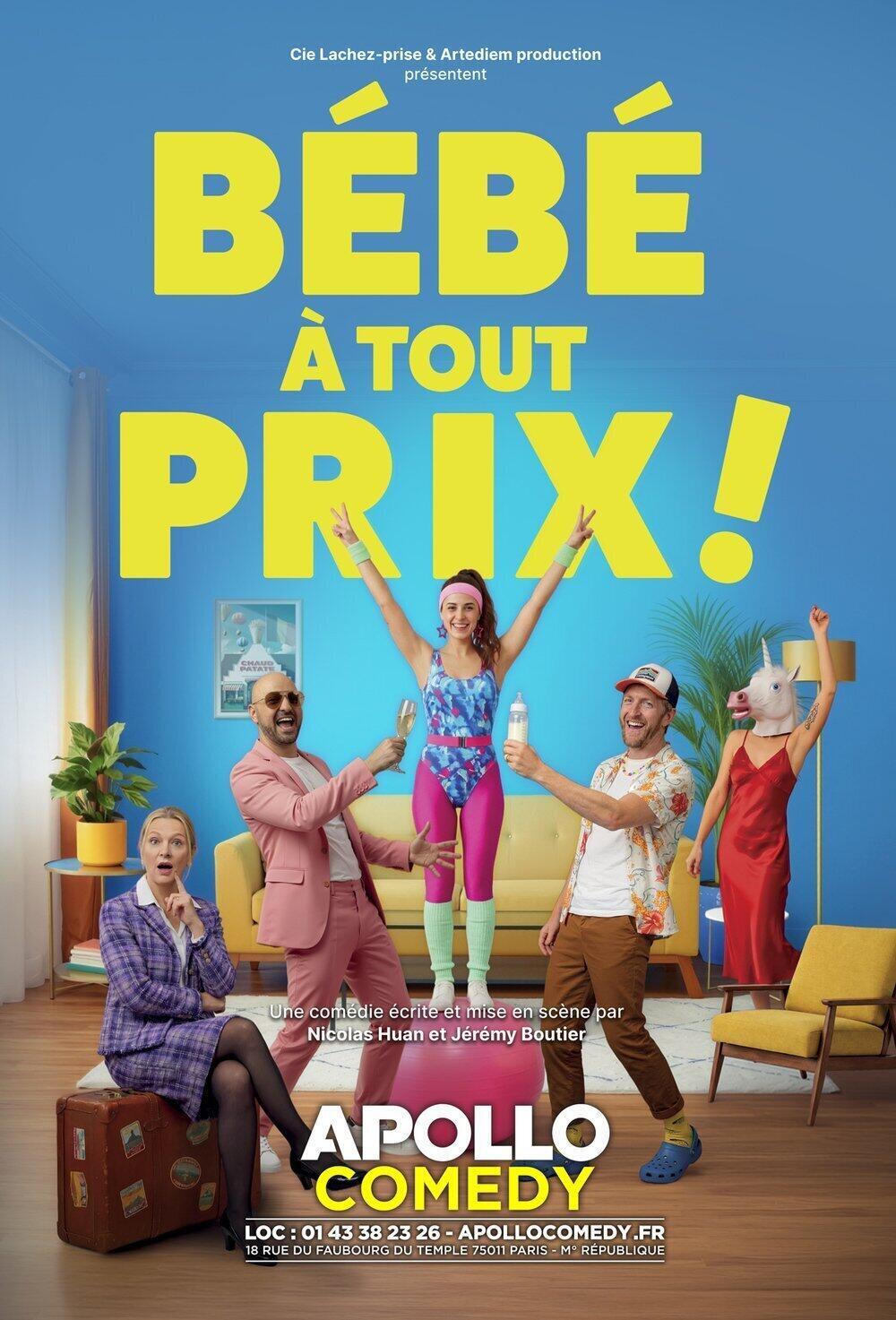 Envie d’une comédie pétillante, rythmée et pleine de fantaisie ? Direction l’Apollo Théâtre à Paris ! Après le succès de The Marabout Show, Nicolas Huan & Jérémy Boutier vous présentent une toute nouvelle pièce de théâtre aussi drôle qu’originale : Bébé à tout prix.