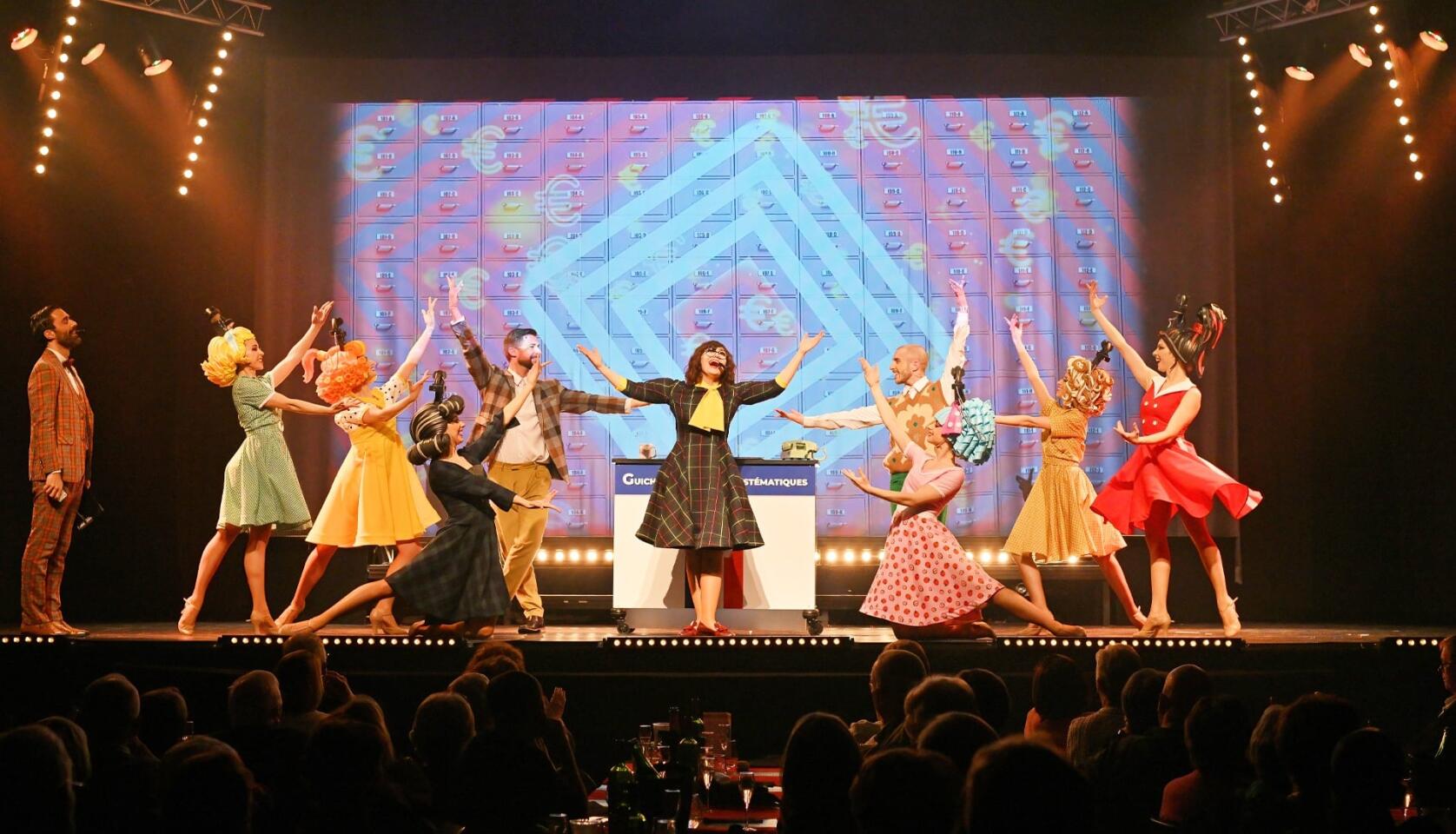 Bon appétit : Dégustez votre repas préparé par notre Chef de cuisine Raphaël Chambolle. Pendant que vous vous régalez, le spectacle commence dans la salle : la chanteuse, les danseuses et performeurs de Voulez-Vous viennent à votre rencontre faire votre connaissance… Et d’autres surprises !