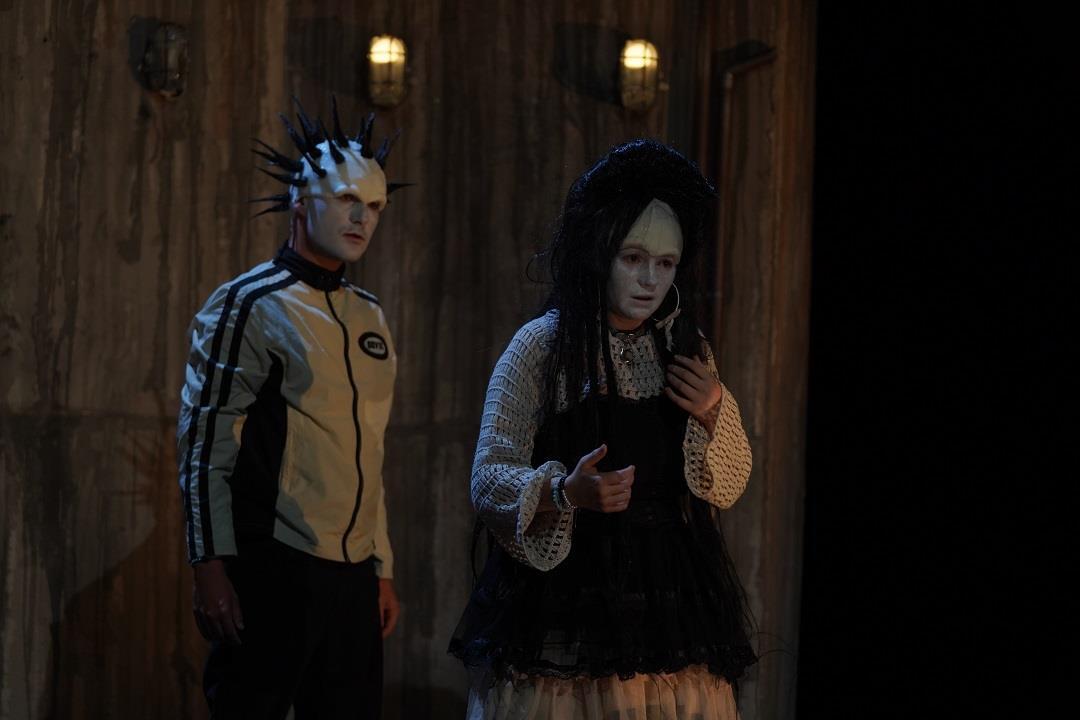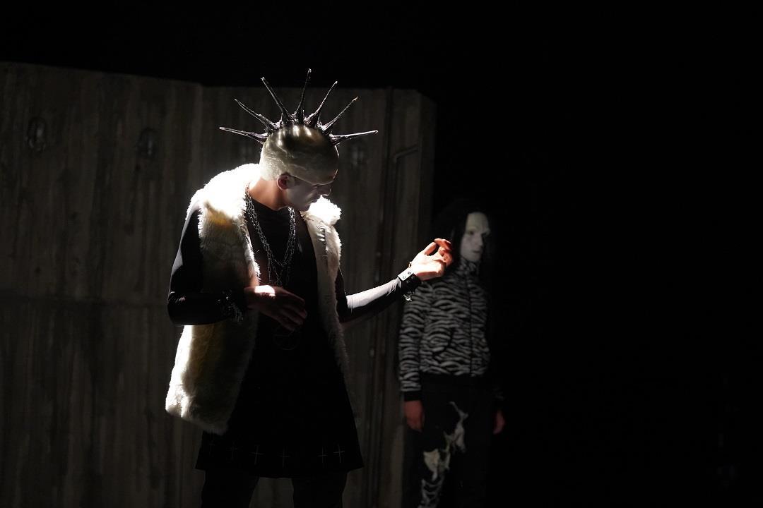 Tout se passe dans un sous-sol froid, lugubre, inhospitalier. Des tapis élimés jetés au sol. Des parois de béton brut, imbibées d’humidité. De vieilles lampes de chantiers dont les lumières, vacillantes, tracent des formes étranges aux murs. Cinq adolescent.es entrent. Ils sont gauches, ils ont le visage peint en blanc et le crâne piqué de cheveux noirs, artificiels. Ils ont l’air de pantins ou de poupées, tout droit sorties d’un mauvais rêve. Ils forment un groupe de rock. Ce soir, ils sont venus pour répéter.