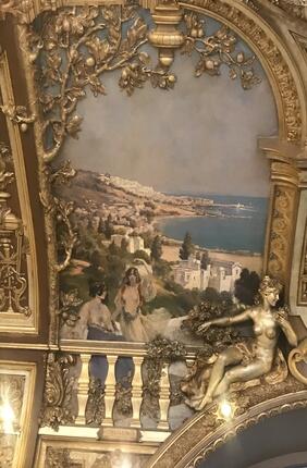 Après la visite de la gare, de ses sculptures et peintures, nous découvrions les salons du Train bleu et ses peintures, entièrement restaurées, avant de s’arrêter devant un goûter dans l’un des salons de l’établissement.